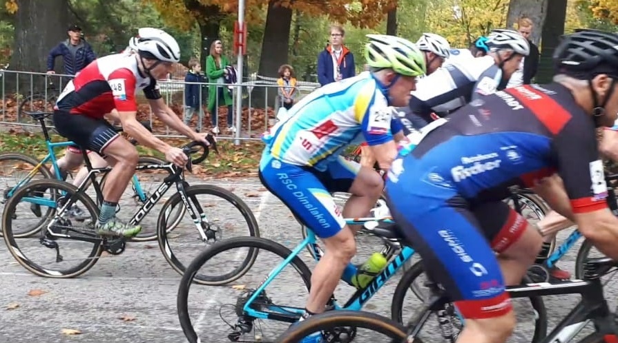 Am vergangenen Wochenende, dem 22. und 23.10.2022, gab es auf der Galopprennbahn in Düsseldorf eine Cross-Doppelveranstaltung, bei der mit Horst Stahr auch ein erfahrener Teilnehmer des Radsportclubs Dinslaken mit am Start stand. Samstags fand ein weiterer Lauf zur Radcross Bundesligawertung statt und Sonntags stand das so genannte Gravel- und Crossfestival auf dem Programm. Beide Veranstaltungen wurden auf einem etwa 2,8 Kilometer langen Rundkurs auf dem Gelände der Galopprennbahn ausgetragen. Auf dem Kurs galt es dreimal eine Sandpassage, die teils nur mit Schieben zu bewältigen war, zu überwinden. Zusätzlich mussten eine Treppe, ein künstlich angelegter Überweg sowie quer zur Strecke aufgestellte Hindernisse in Form vom Baubohlen übersprungen werden. Das alles führte immer wieder zu Rhythmuswechseln, welche die Teilnehmer forderten und für einen konstant hohen Puls sorgten. In der Klasse Master 4 (über 60 Jahre) war eine Fahrzeit von 40 Minuten angesetzt, was fünf zu absolvierende Runden bedeutete. Horst Stahr konnte das Rennen am Samstag auf einem guten neunten Platz beenden und steht mit den bislang erzielten Punkten derzeit auf Platz 12 in der Rad-Bundesliga. Am Sonntag lief es für ihn dann noch besser: in den ersten beiden Runden beim Gravel- und Crossfestival konnten er sich mit fünf weiteren Fahrern vom Feld absetzten. Die Gruppe baute ihren Vorsprung kontinuierlich weiter aus und Horst Stahr schaffte so am Ende des Rennens einen hervorragenden 5. Platz. Dies ist derzeit seine beste Platzierung in der noch laufenden Saison!