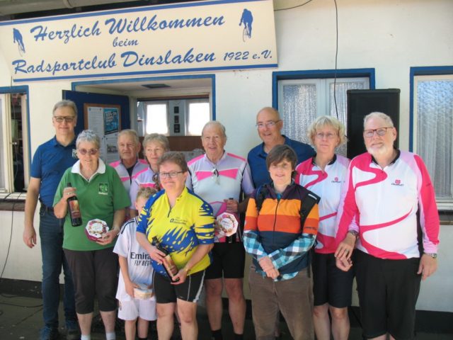 Am vergangenen Sonntag, den 11.08.2024, trafen sich die Wanderfahrer aus der näheren Umgebung am Vereinsheim des Radsportclubs Dinslaken. Etwa 20 Teilnehmerinnen und Teilnehmer fuhren sternförmig aus ihren jeweiligen Heimatstädten nach Dinslaken, um sich bei Gegrilltem sowie Kaffee und Kuchen auszutauschen und Punkte für die Wanderabzeichen zu sammeln. Die teilnehmerstärkste Gruppe kam vom RSC Hagen (6…