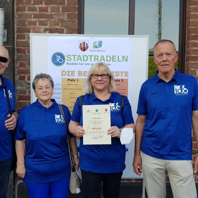 Grund zum Feiern gab es für den Radsportclub Dinslaken bei der Abschlussveranstaltung des diesjährigen Stadtradelns auf der Terrasse des Rathauses am 17.06.2022. Eine kleine Abordnung in den neuen Polo-Shirts zum 100jährigen Jubiläum des RSC, bestehend aus der Kassenwartin Bärbel Kottenhahn, Georg Bergendahl sowie Rosi und Werner Franzelin, konnte bei Kaffee und Kuchen gleich zwei Urkunden…
